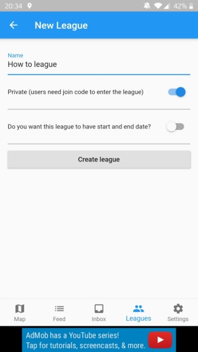 Enter the name of your league and choose if it will be private and if it will be time restricted. Finish the process by tapping Create league. You will now see your newly created league in the list.